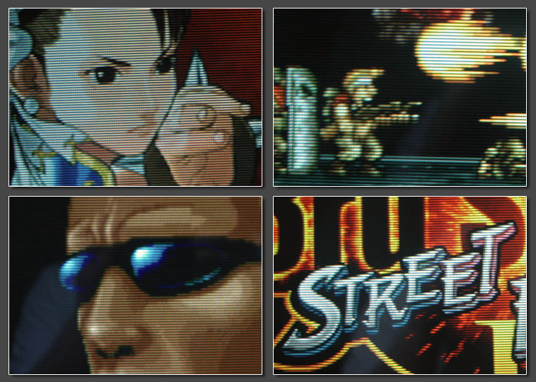 genuine hi-res material (games running in real 480p) on a classic dual-sync arcade cab. The resulting picture doesn't have the scanlines we want for low-res material, but maxes out the resolution classic