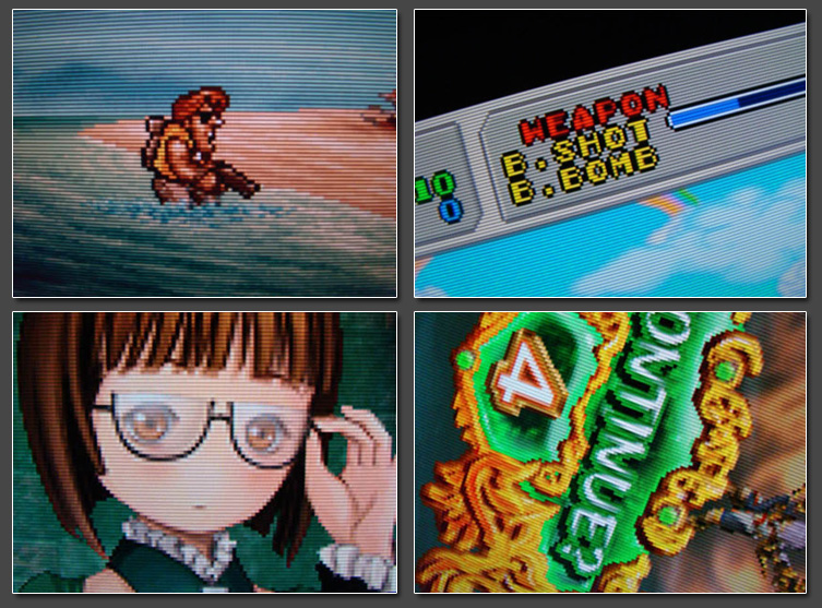 those systems to any CRT and get a picture. For low-res games that's ufortunately not what we want. We want 240p signals to achieve that great low-res "scanlined" look as seen above. This is where machines