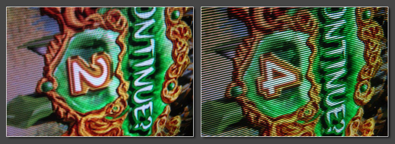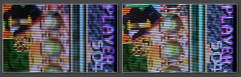 (output from an Emotia, untweaked on the left, tweaked pixel alignment on the right)