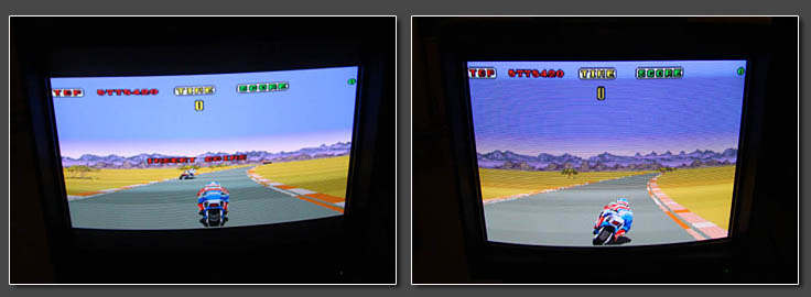 controls. And second the 480i output can be changed to 240p by adding a RGB interface (see below). The geometry controls can come in handy with newer classic titles like Super Hang On on the 360, which