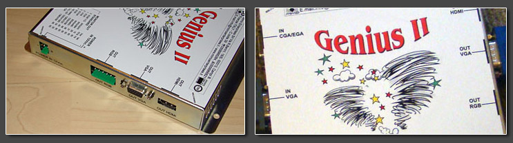 The Genius II comes in a heavy duty steel enclosure, it's powered through a custom +12V connector and features HD15 VGA connectors for both it's input and